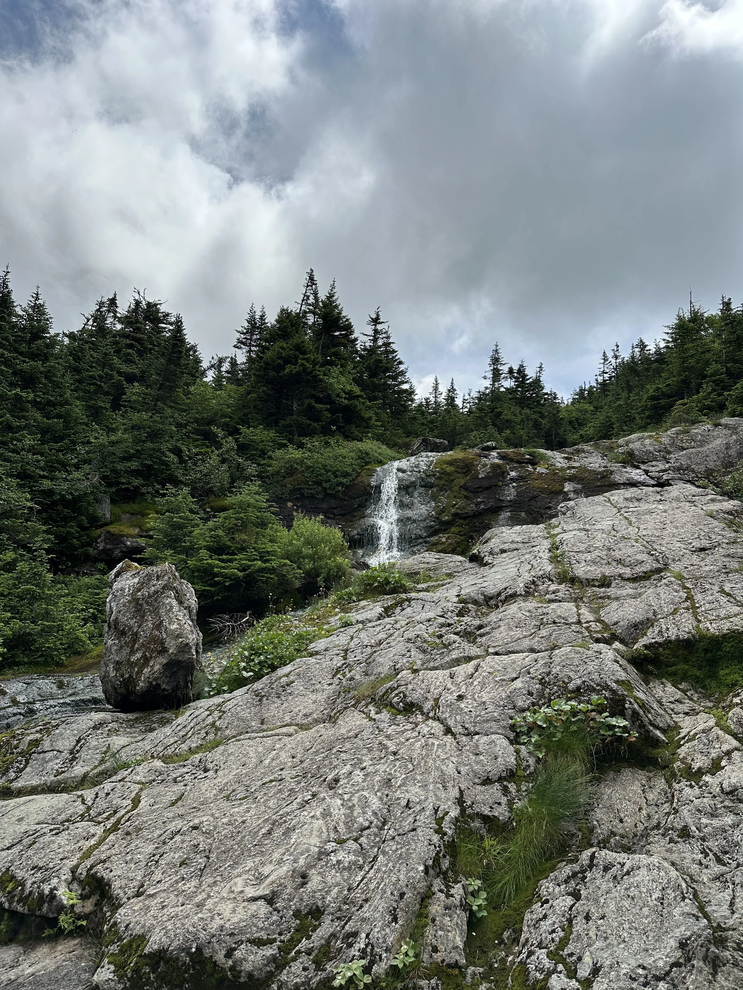 After hiking a short while, we finally came to one of the most beautiful parts of the hike to Mount Monroe and Mount Washington. This section of the trail has a waterfall running down the side of the mountain and a clearing rewarding us with beautiful views! We took a small snack break while soaking in the beauty of the trail.