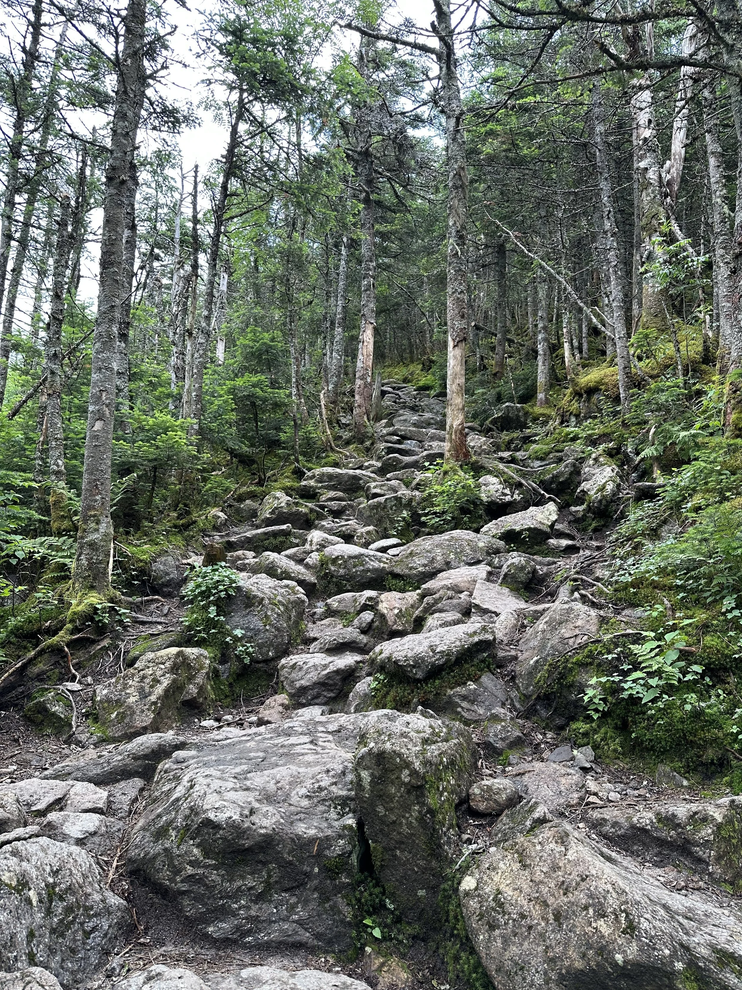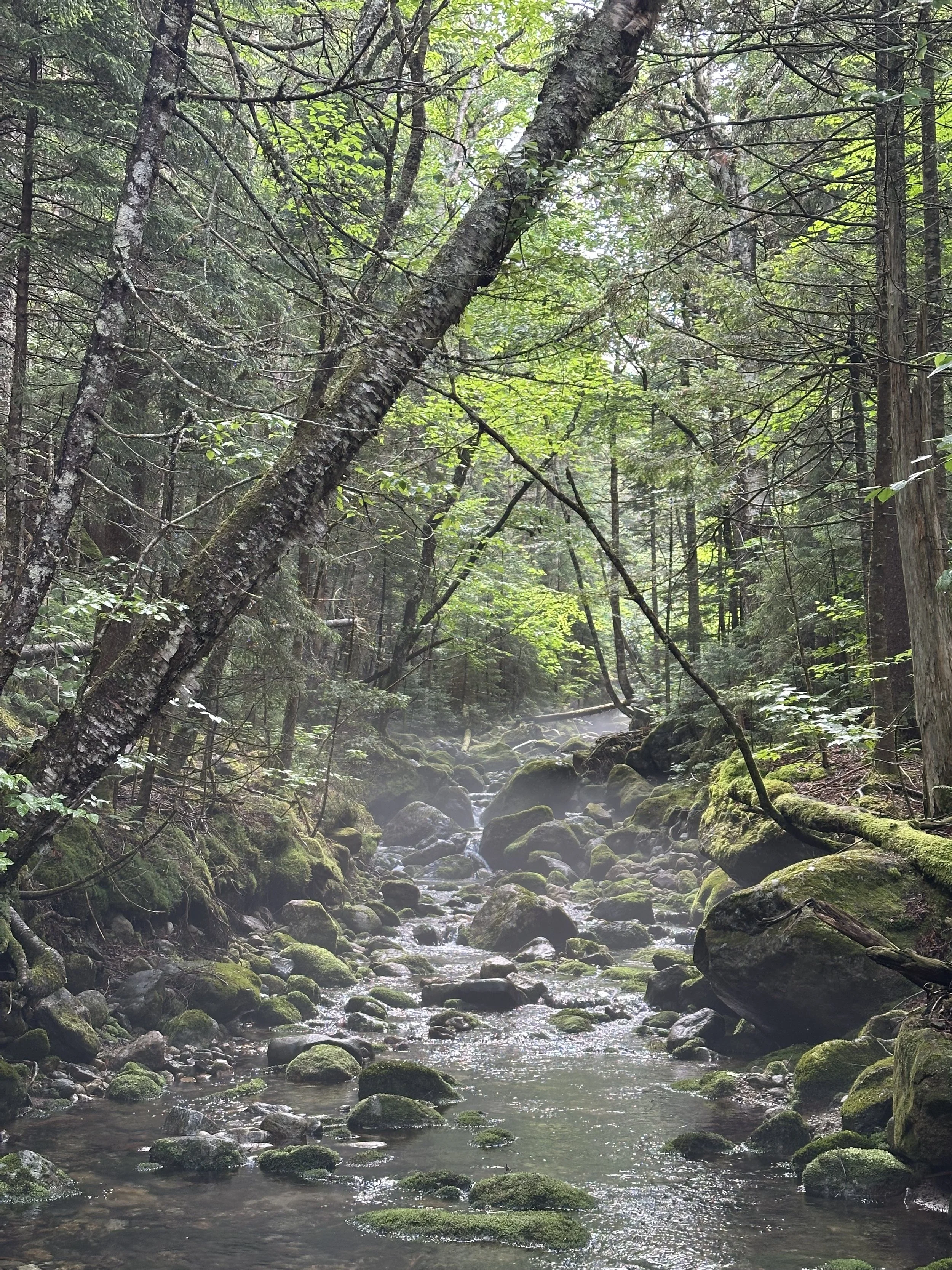 The first mile on Ammonoosuc Ravine Trail was relatively flat, making it a nice warm-up for what was to come. We had some fog in the early morning which made the trail feel mystical!