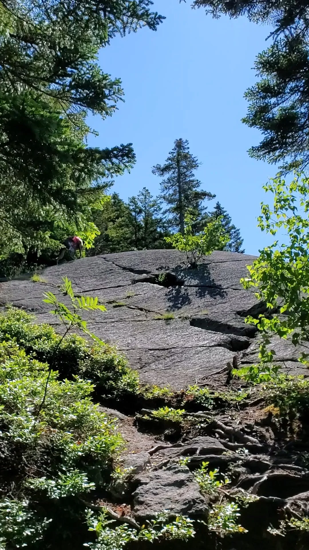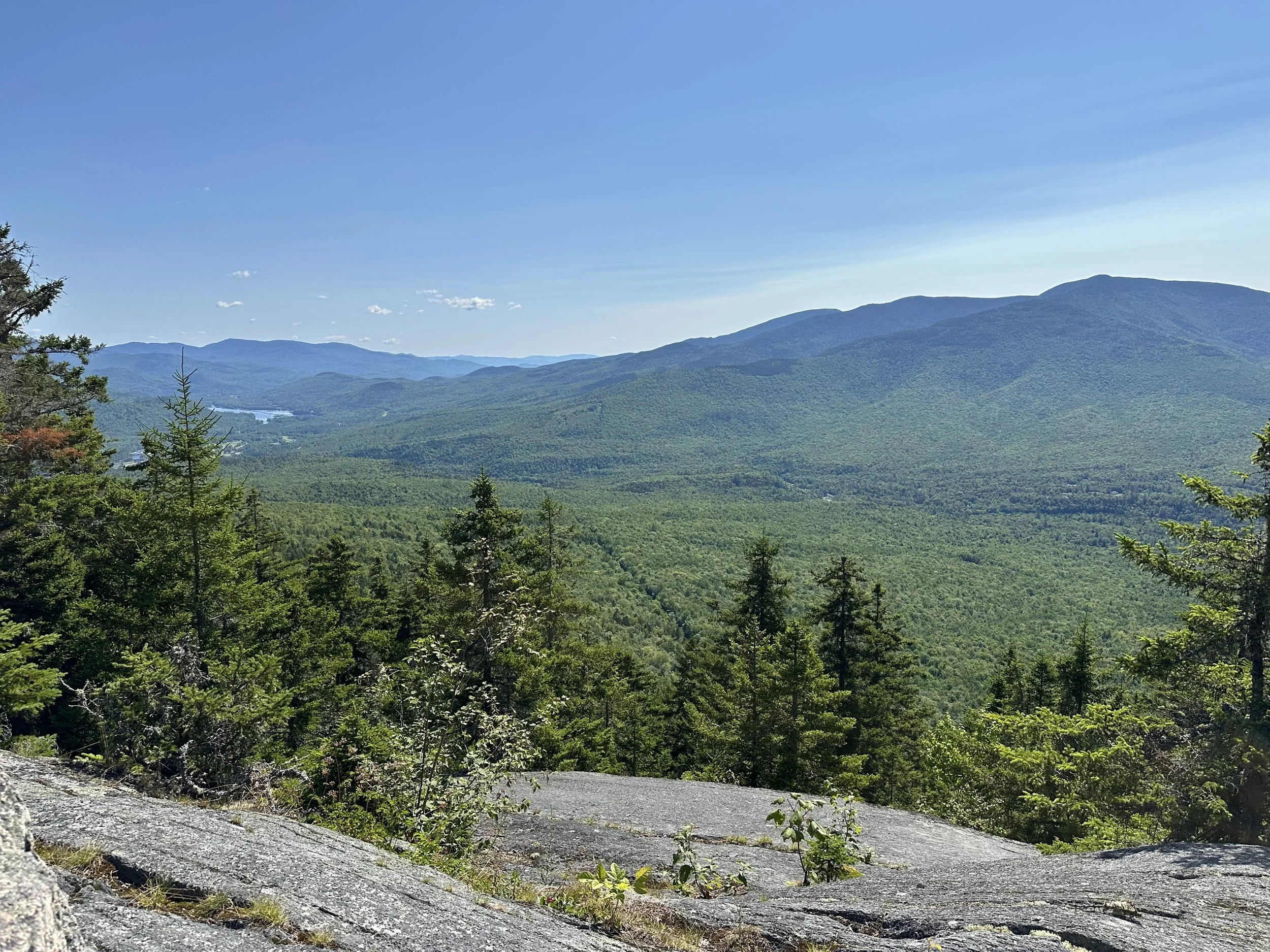 The actual summit of Pine Mountain was about 0.3 miles past the ledges where cement footings from an old fire tower are. This area didnβt have any views, but we didnβt mind since we had incredible views from the ledges.