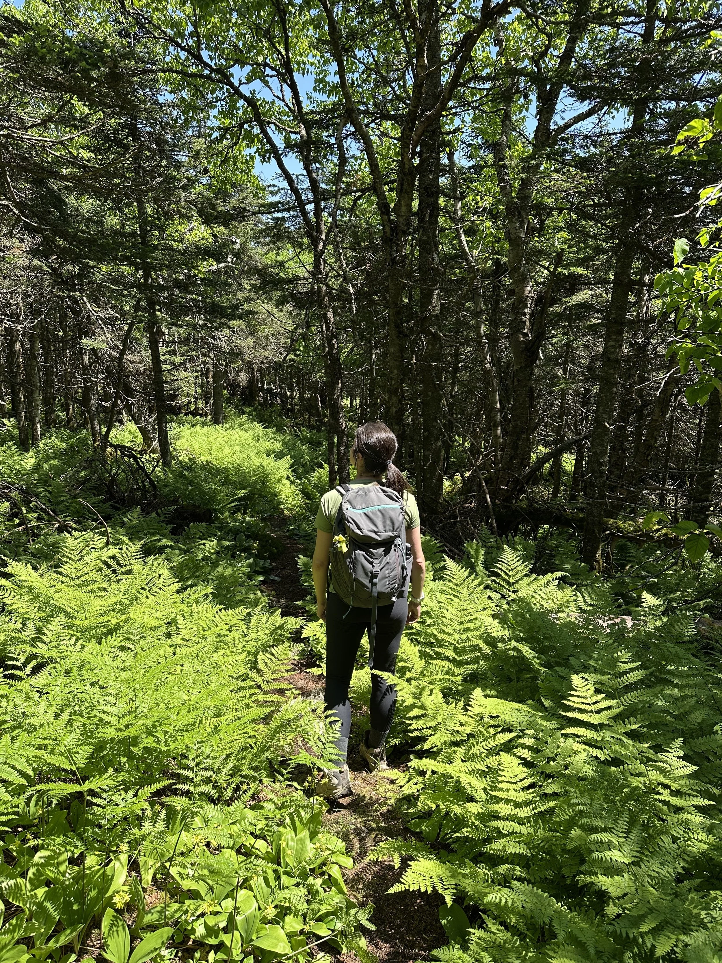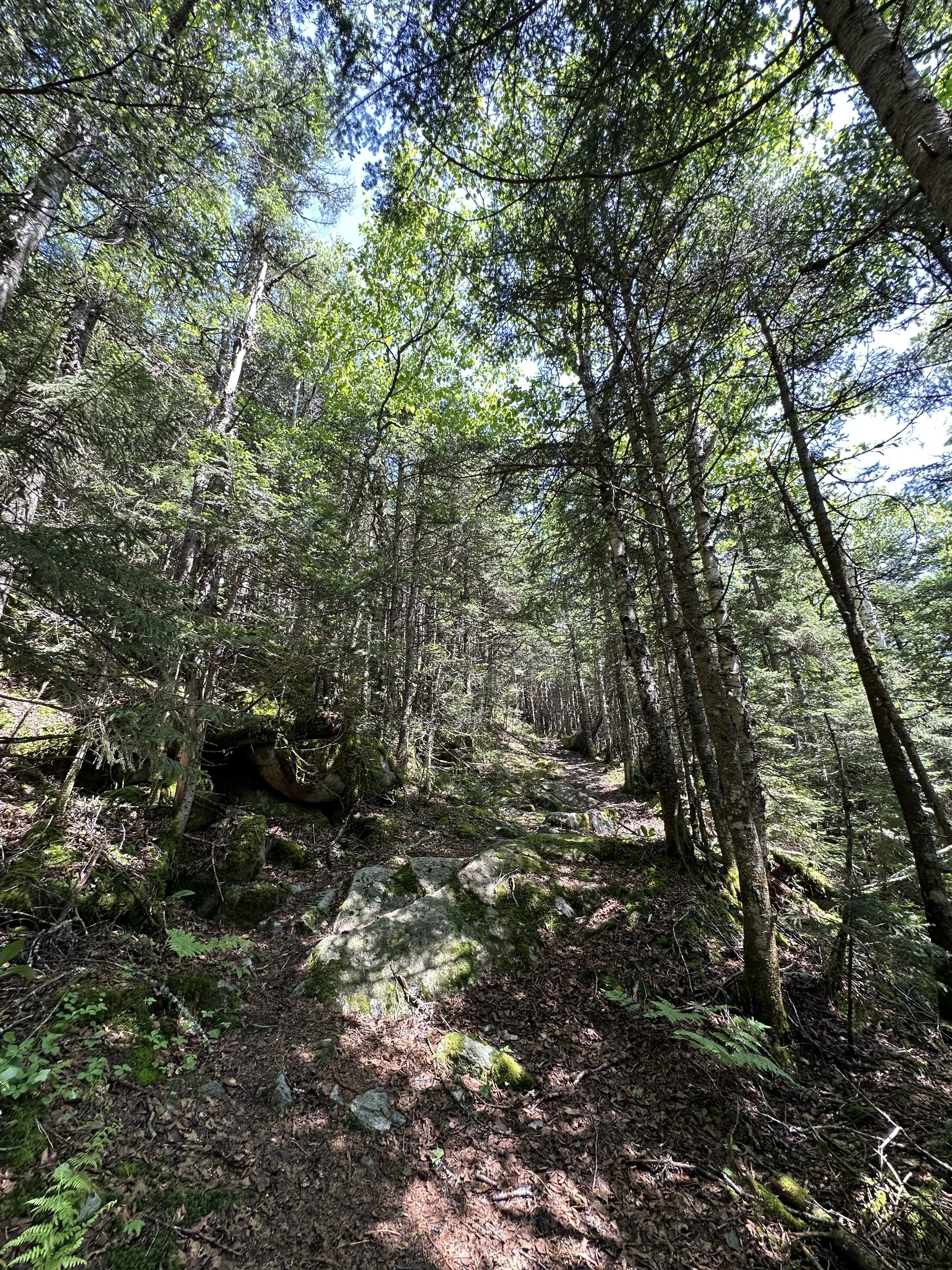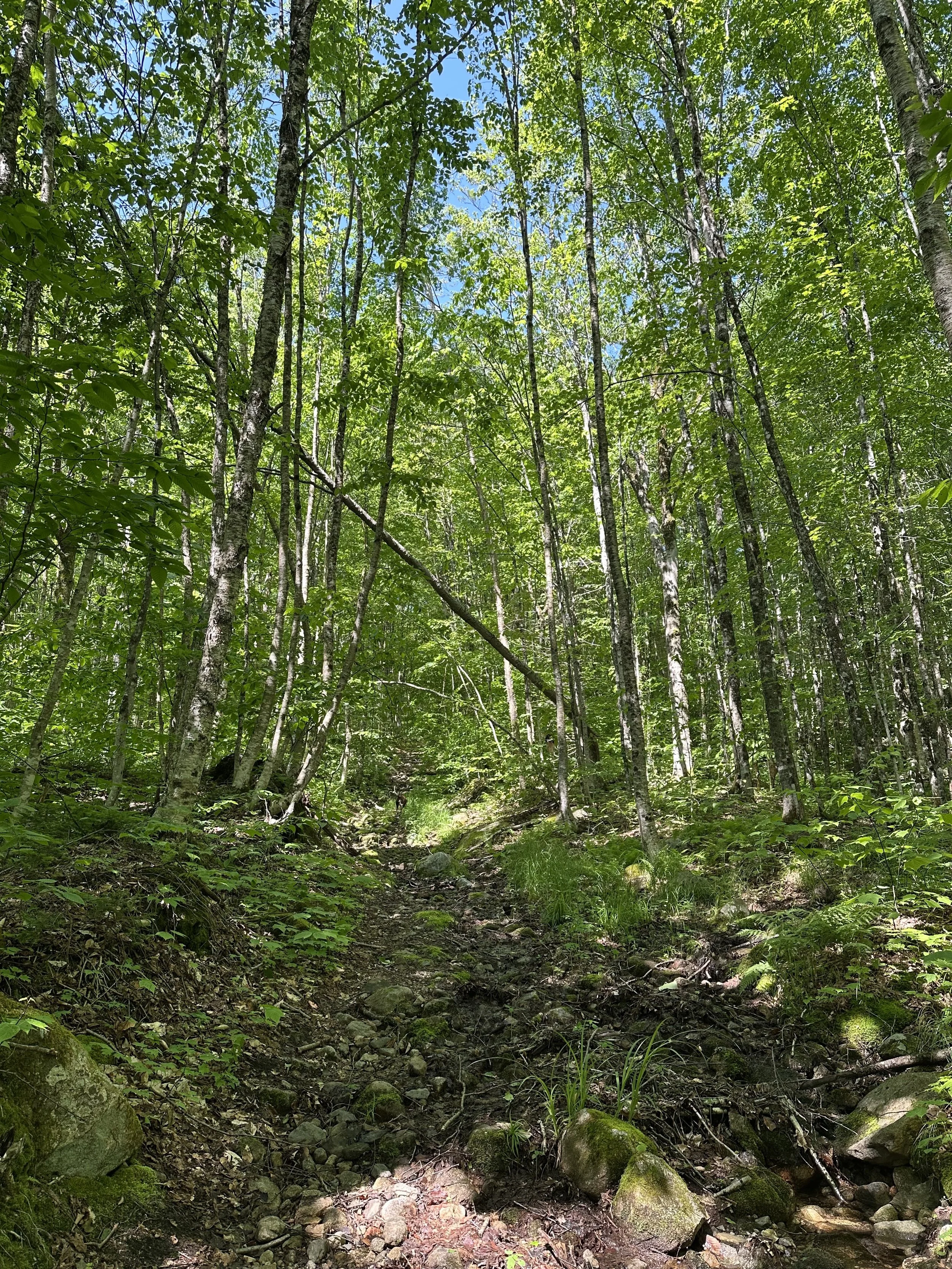 The trail begins along a snowmobile trail before ascending steeply to the summit. Although the trail is not technical, it is steep and makes you work for those views! The trail just before the summit travels through a stunning forest with ferns, which you will fall in love with.
