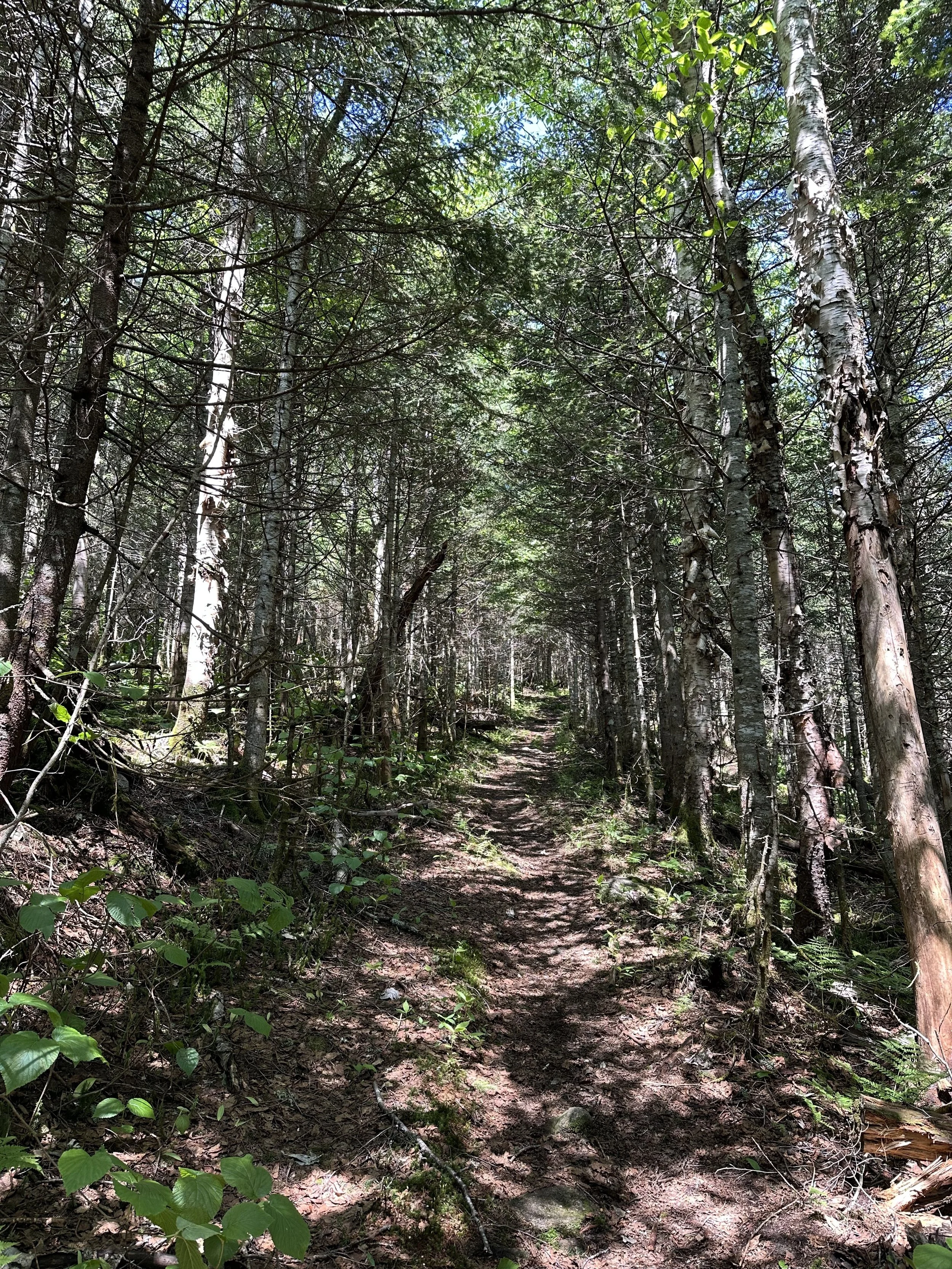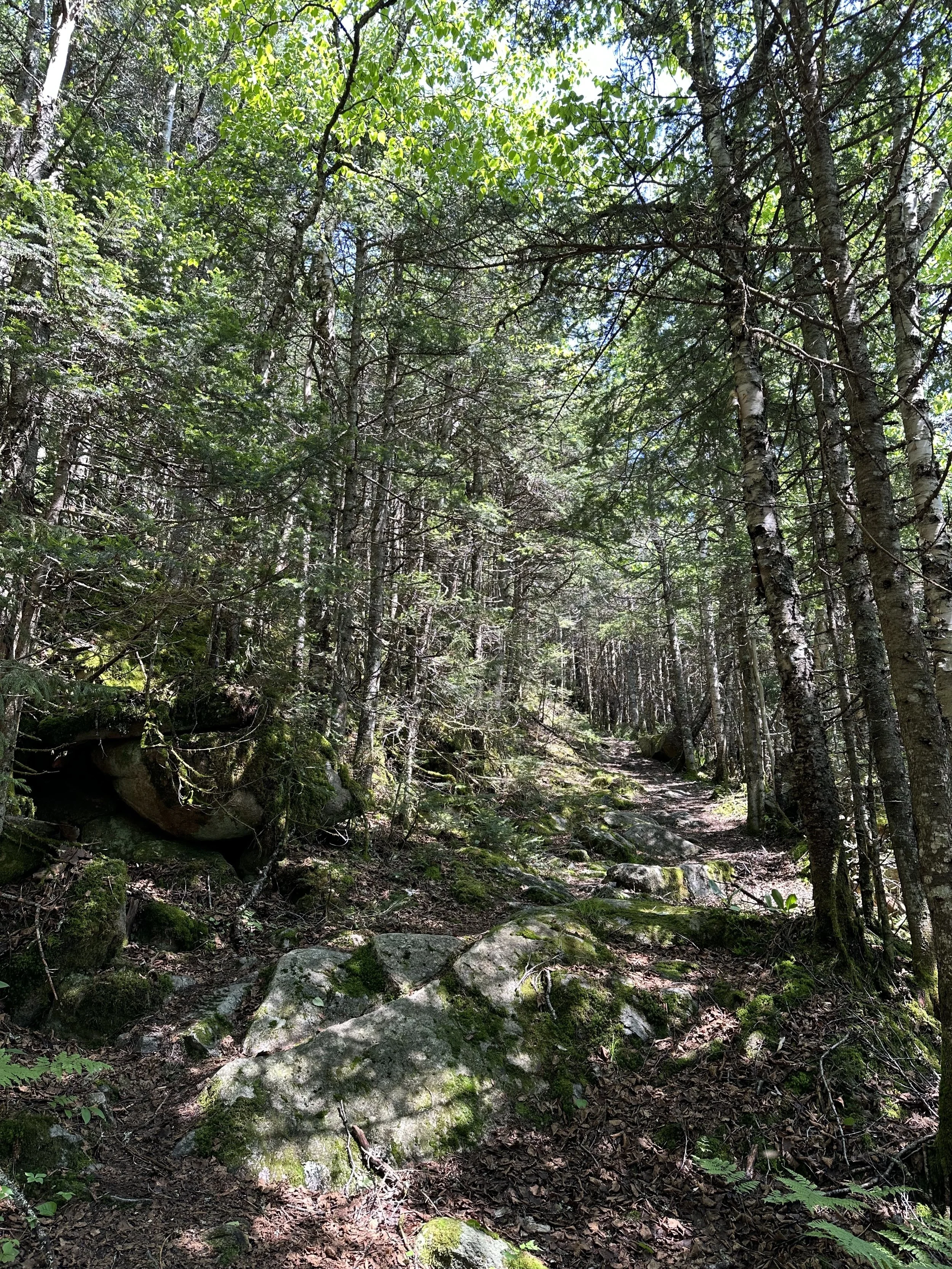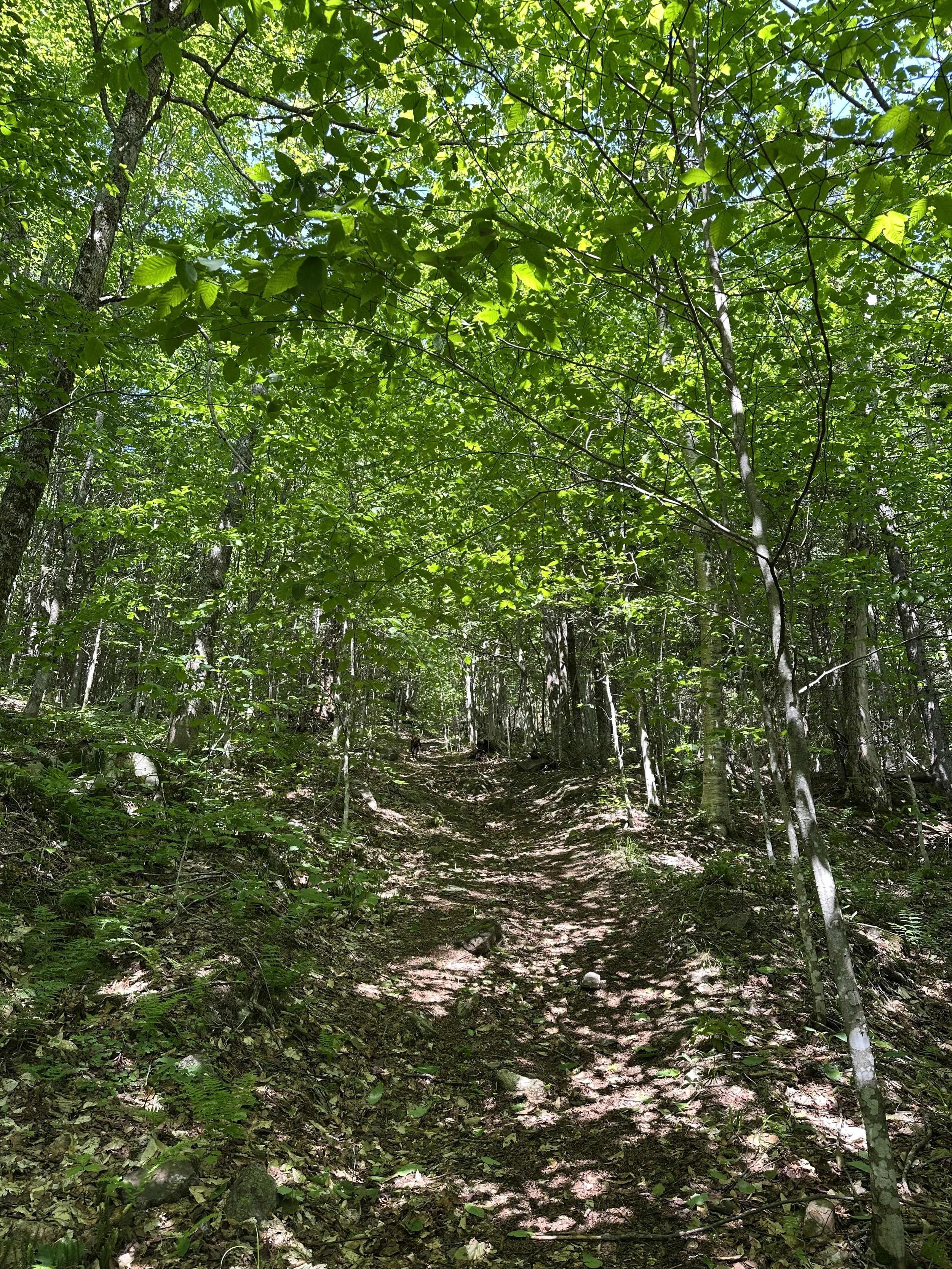 The trail begins along a snowmobile trail before ascending steeply to the summit. Although the trail is not technical, it is steep and makes you work for those views! The trail just before the summit travels through a stunning forest with ferns, which you will fall in love with.