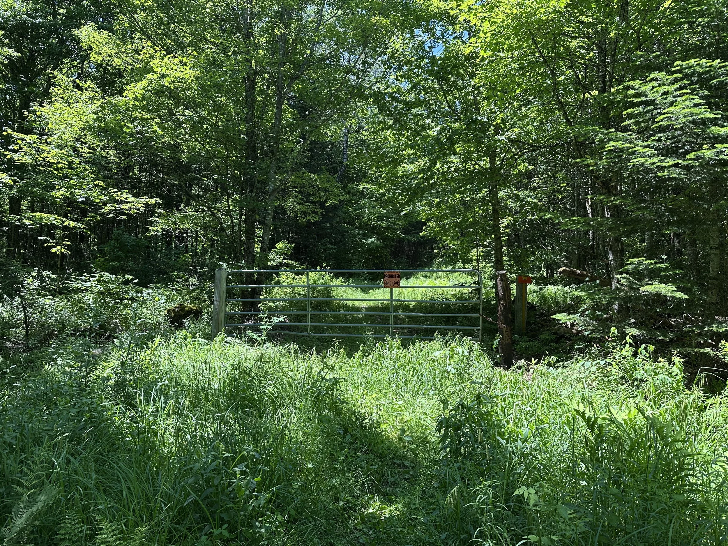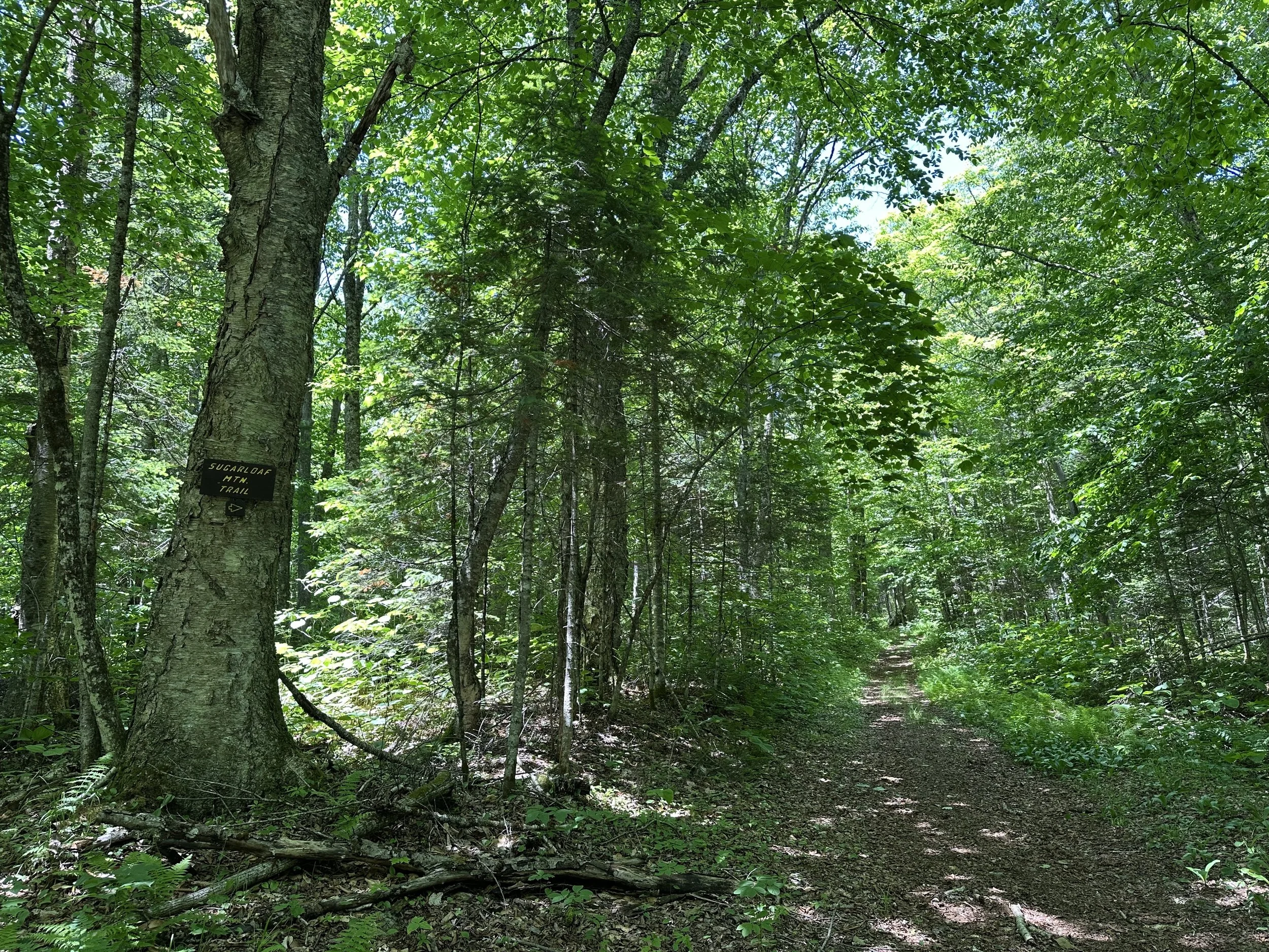 The beginning of Sugarloaf Mountain Trail passed by what I think was a private home before crossing a bridge and passing a gate. The trail followed along a wide snowmobile trail for 0.1 miles before coming to a trail junction, where we continued right to stay on Sugarloaf Mountain Trail.