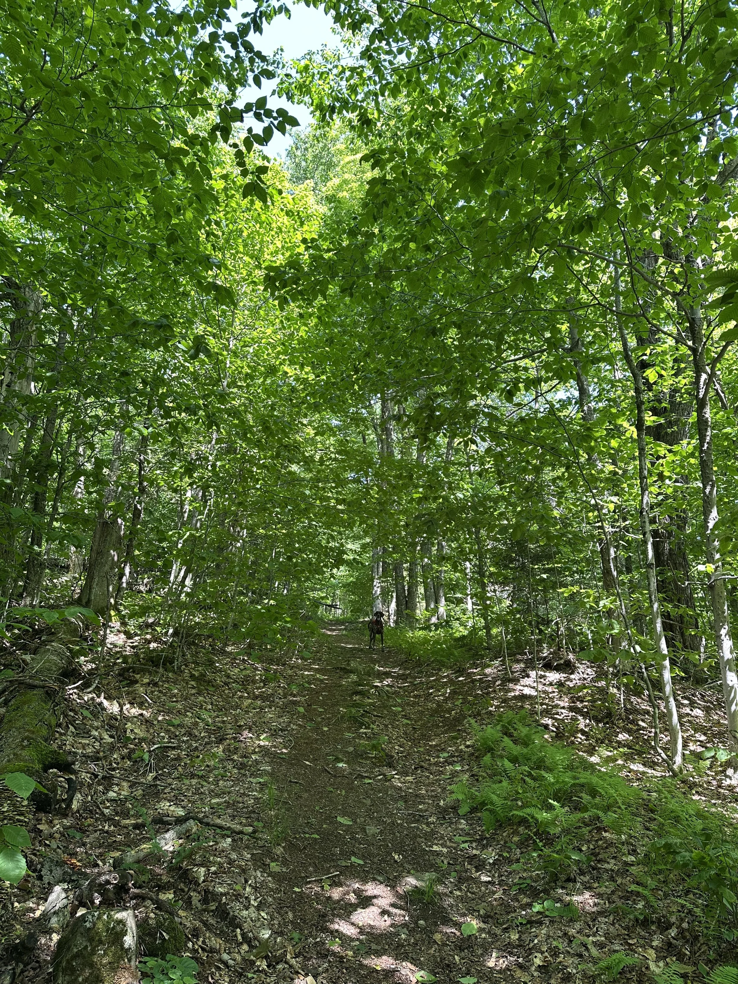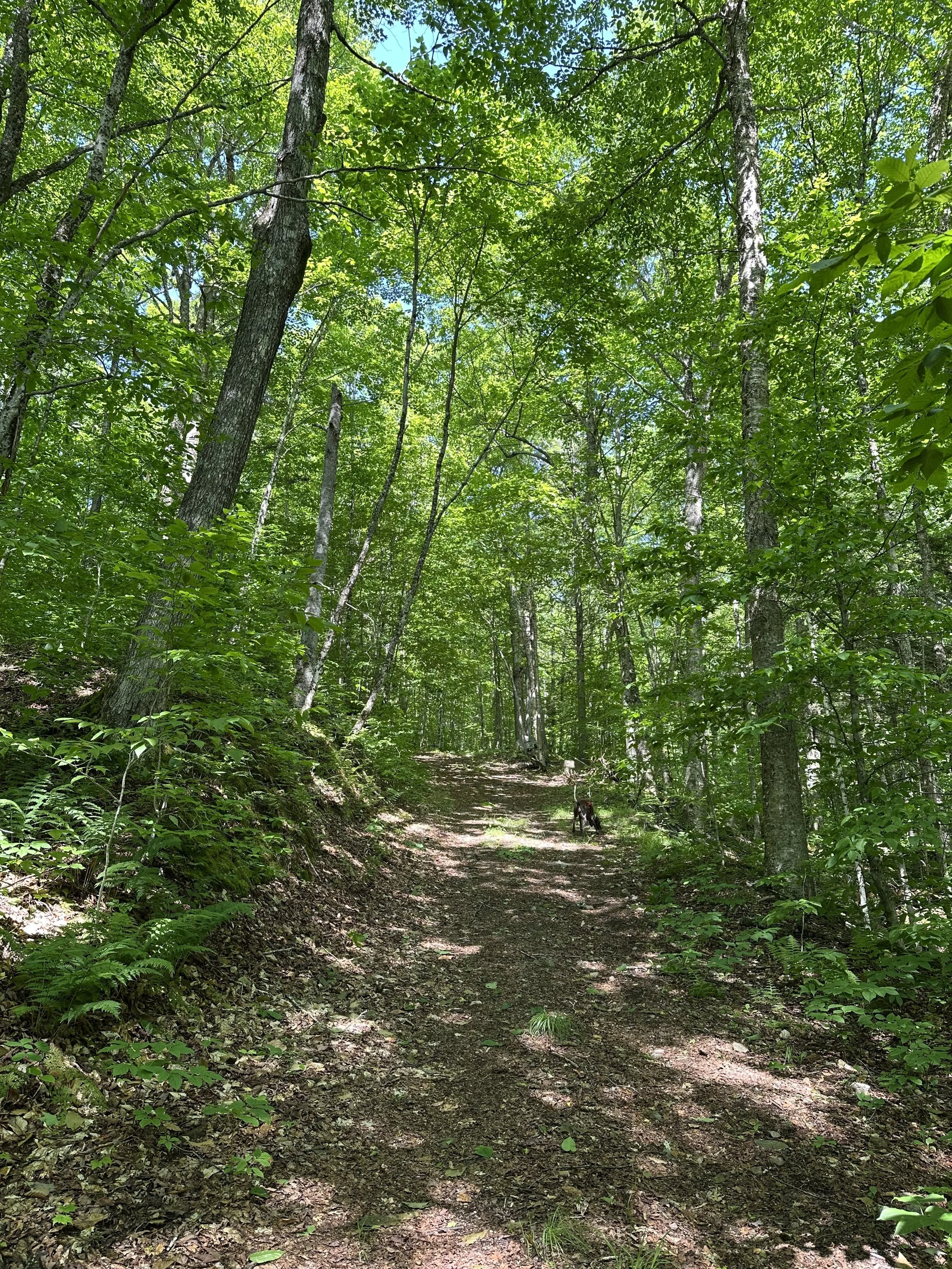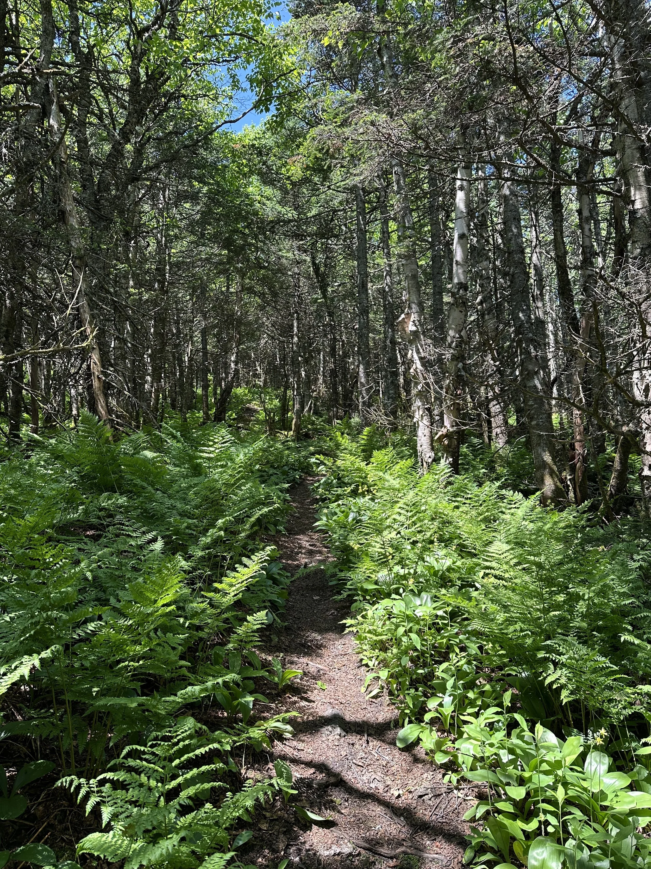 Then we traveled through my favorite section on the trail which was surrounded by ferns. It was a bit overgrown with quite a few blowdowns, but we navigated easily through it.